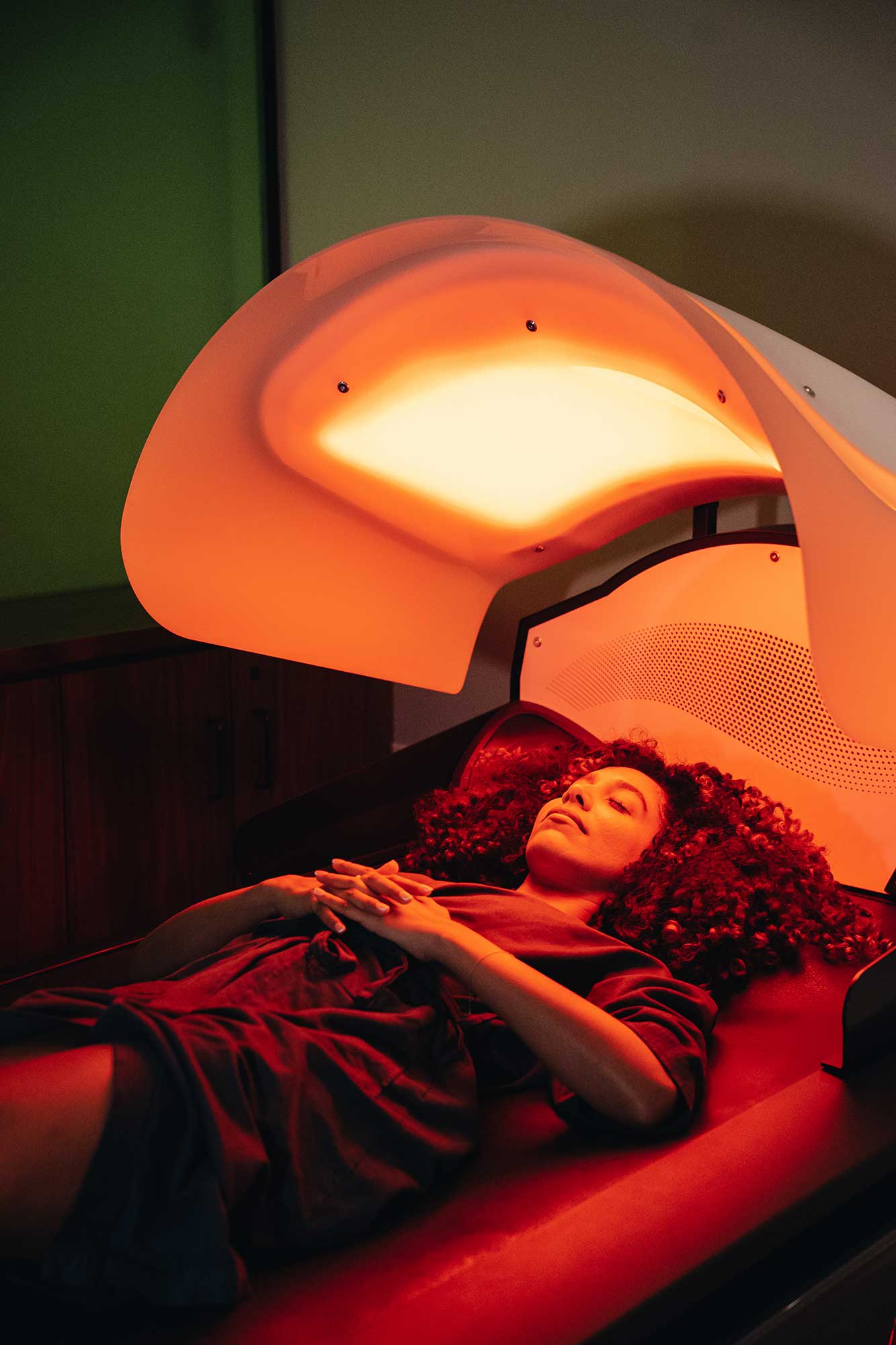 Arnaldo, who escorted me, assured me that the circuit had been personalized to account for my claustrophobia and shepherded me to an infrared pod with a top that stayed partially open, allowing me to fully relax in the Prism Light Pod. I was also able to lie passively and comfortably on two different water beds: the WAVE by Wellstystem, where I enjoyed a thirty-minute head-to-toe bubble massage; then, I tried the Gharieni Welnamisa water pillow top bed. It was heated and included color therapy earphones for soothing sound therapy.